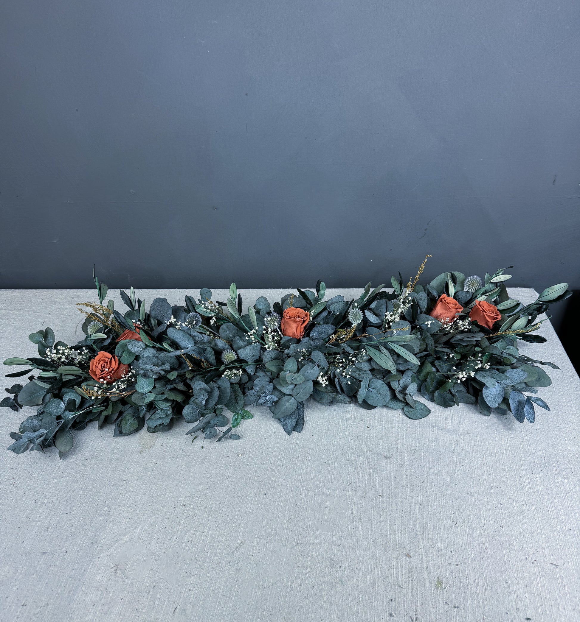 Part of our bestselling Penny dried flower wedding range, this stunning wedding garland centrepiece is perfect for decorating your top table in style.